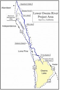 This large-scale mitigation project was initiated in December 2006 and reintroduced continuous flows to a 62-mile stretch of the Lower Owens River and delta. This portion of the Owens River, from just south of Aberdeen to the Owens Lake, had been left nearly dry since 1913, when the river was diverted into the Los Angeles Aqueduct.