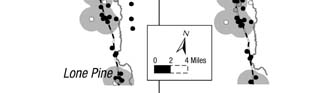 When LADWP inventoried Owens Valley vegetation between 1984 and 1987, water tables were generally high throughout the valley because of a series of wet years (1982-86) and relatively low groundwater pumping. The vegetation mapped during that period, which became the baseline for management under the Inyo/Los Angeles Water Agreement, reflected these conditions.